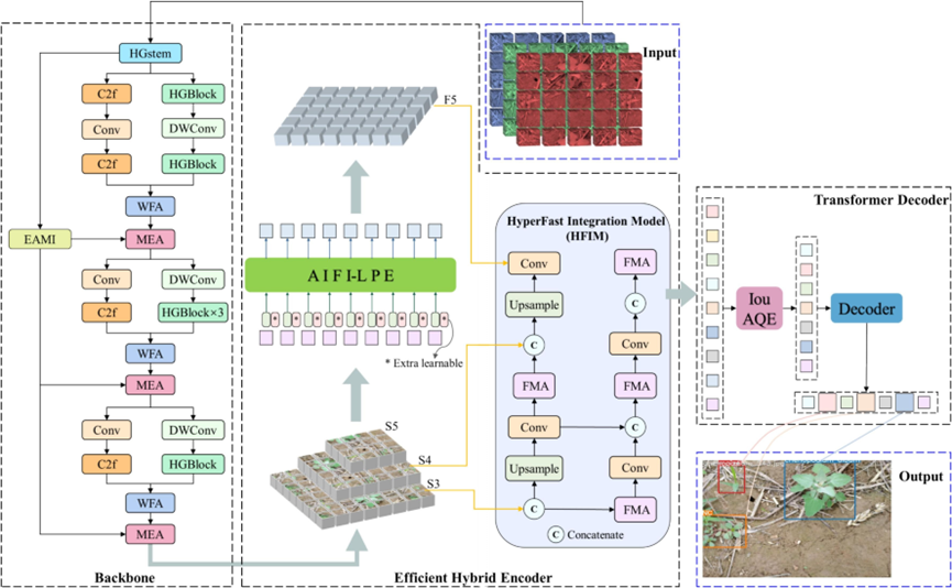近日,成人影视片 黄玉祥教授团队在株间机械除草系统关键技术研究方面取得了新进展。研究成果《RT-MWDT: A lightweight real-time transformer with edge-driven multiscale fusion for precisely detecting weeds in complex cornfield environments》发表于中科院一区TOP期刊《Computers and Electronics in Agriculture》。论文第一单位为成人影视片 海南研究院,硕士研究生张志熠为论文第一作者,郑智旗博士为论文通讯作者。
