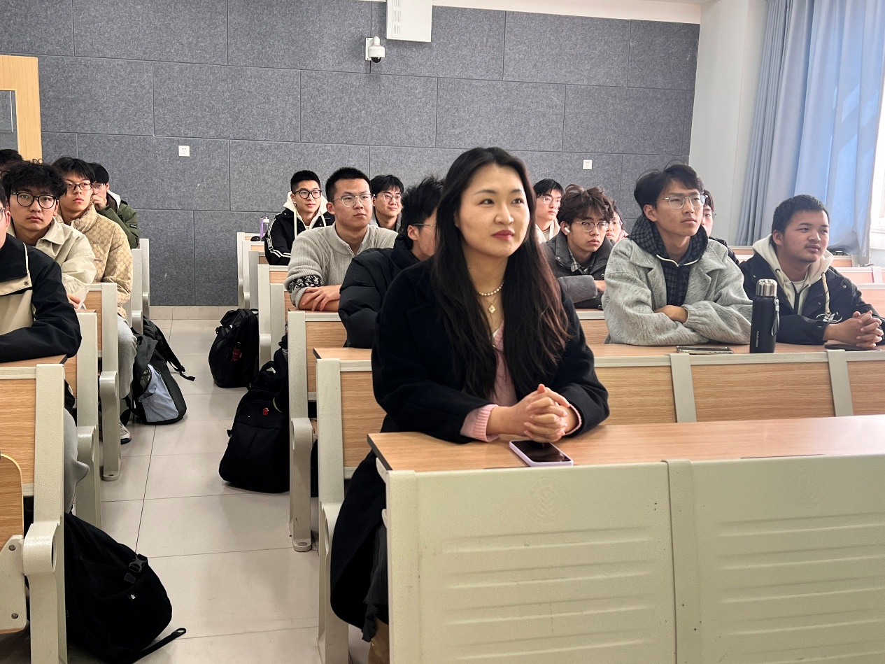 辅导员周晗星在发言中肯定了同学们的学习热情。她结合自身工作体会,分享了对于青年学生融入时代发展的思考。她鼓励同学们在日常学习中多一份定力,在专业钻研中多一份韧劲,在集体生活中多一份担当,把个人的成长节奏融入国家发展的节拍中去,希望同学们在后续的学习生活中继续保持这份学习的主动性。周老师的发言朴实具体,贴近学生实际,引发大家共鸣,朴实的话语里透着关切,也给了在场同学实实在在的启发。