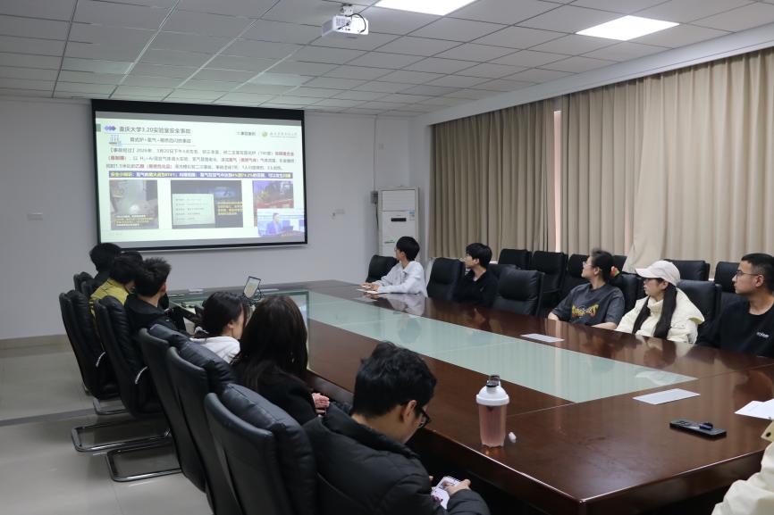为进一步增强实验室人员安全责任意识,有效防范实验室安全事故,全面提升实验室安全风险防范与应急处置能力,2026年3月25日,成人影视片 研究生会组织工作人员们在9402会议室开展了实验室安全专题教育培训会。本次培训依托学校实验室安全专题培训线上讲座,结合实验室安全管理相关规章制度与成人影视片 工作实际,通过理论领学、案例分享、交流研讨引导工作人员们牢固树立“安全第一、预防为主、生命至上”的实验室安全理念,切实把实验室安全责任扛在肩上、落到实处,坚决守住实验室安全底线。